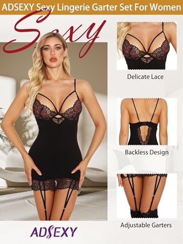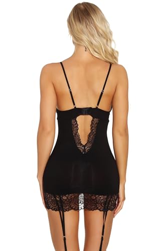 See Through Women Lingerie Teddy Bodysuit with Garter Belt Sexy Lace Babydoll Full Slips No Stockings