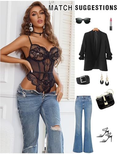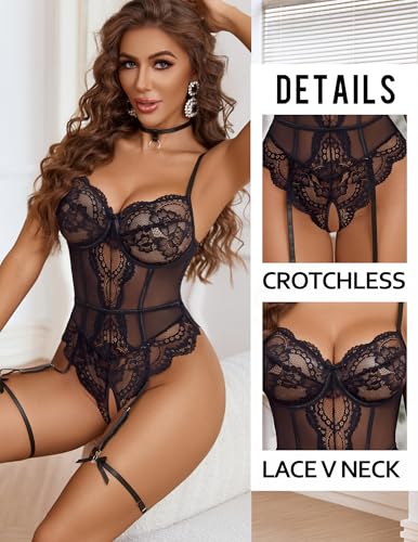 Avidlove Lace Teddy Lingerie for Women Sexy Garter Lingerie Set Lace Mesh Bodysuit Lingerie