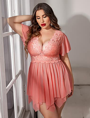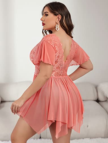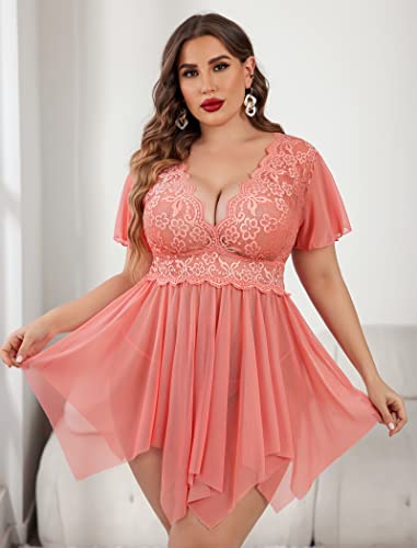 Avidlove Women's Plus Size Babydoll Floral Lace Lingerie Deep V Nighty Mesh Sleepwear