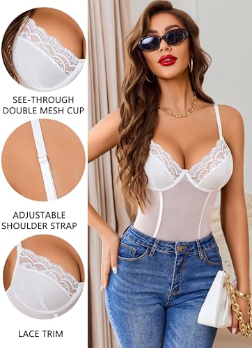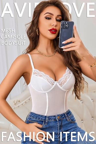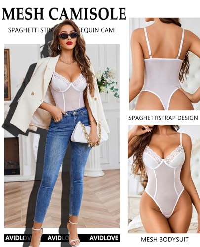 Avidlove Women's Sheer Mesh Bodysuit with Lace Trim Sexy Camisole Date Nights Clubwear