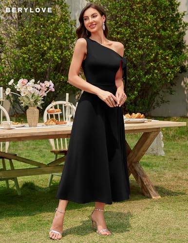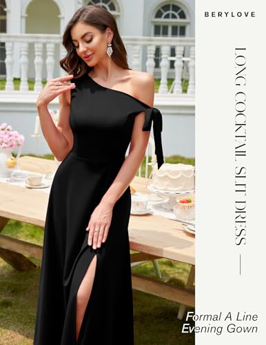 BeryLove Women's Formal Elegant Wedding Guest Dresses One Shoulder A Line Maxi Cocktail Slit Dress