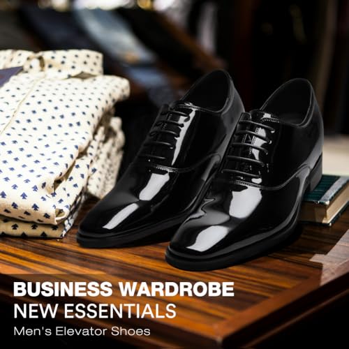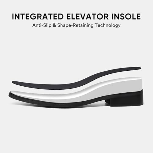CHAMARIPA Men's Leather Elevator Shoes with Ergonomic Built-in Height Insoles | Breathable Anti-Shift Design, One-Last-One-Size Custom Fit | Enhanced Arch Support & Stealth Height Increase