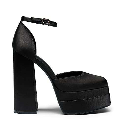 DREAM PAIRS Women??s High Chunky Platform Closed Toe Block Heels Square Toe Ankle Strap Dress Wedding Party Pumps Shoes Aurelia