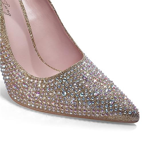 Elisabet Tang Women Pumps, Pointed Toe High Heel Glitter Rhinestone Heels Sparkly Prom Shoes Stiletto Wedding Heels for Bride Shoes for Women