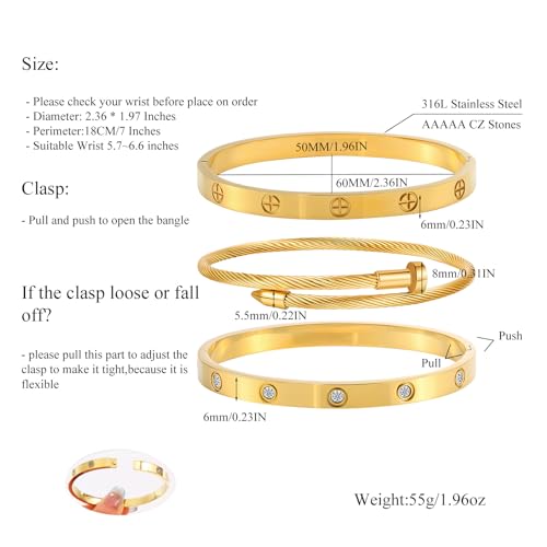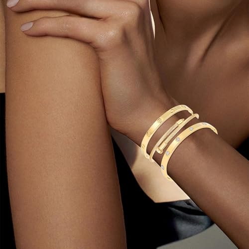 Gold Bracelets for Women - Crystal Stackable Bangles with Friendship & Love Theme - Stainless Steel Jewelry, Ideal Birthday Gift