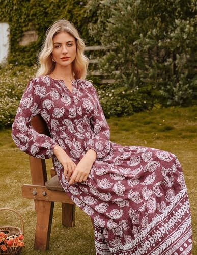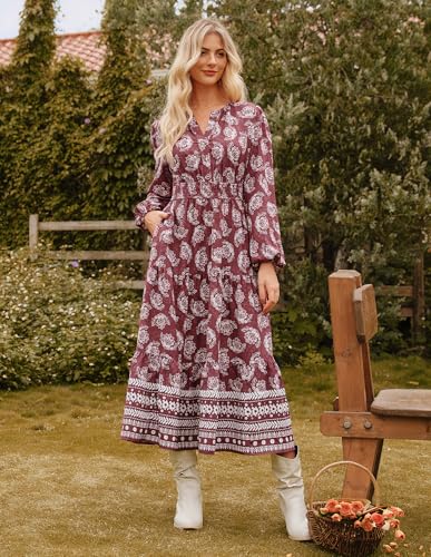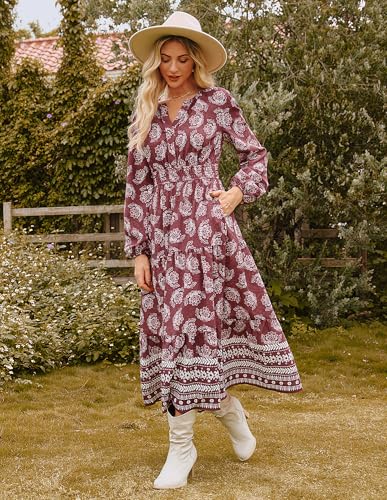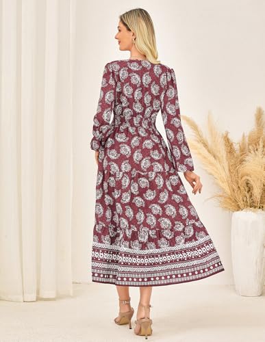 GRACE KARIN Womens 2025 Long Sleeve Floral Maxi Dress V Neck High Waist A Line Flowy Wedding Guest Dresses