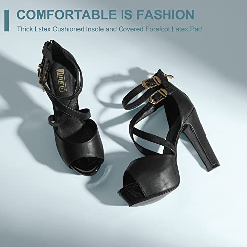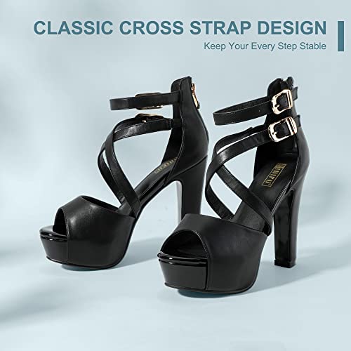 IDIFU Women's IN5 Charcy Crisscross Strappy Platform High Chunky Heels Peep Toe Pump Party Heeled Sandals