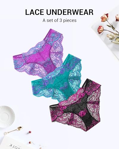 Lace Panties for Women Cheeky Low Rise Underwear with Wave Lace Trim, Sexy & Comfortable Hipster Panty 3 Pack