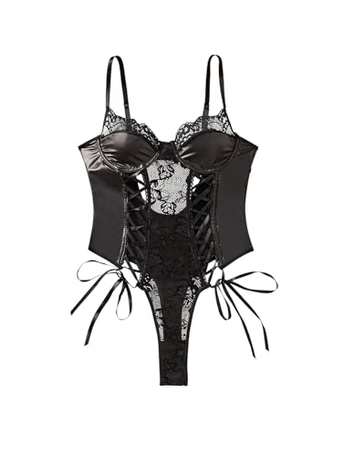 Lilosy Sexy Floral Lace Push Up Underwire Tie Drawstring Teddy Bodysuit Lingerie