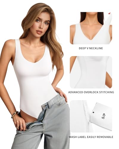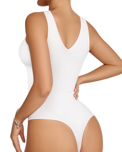 MANGOPOP Women's Deep V Neck Tank Top Bodysuit Sexy Thong Double Lined Body Suit Sleeveless Backless Plunge Going Out Tops