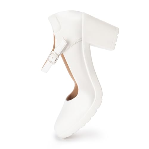 Mary Jane Heels with Arch Support, Closed Round Toe Chunky Pumps for Women, Comfortable Block Heel Dress Shoes
