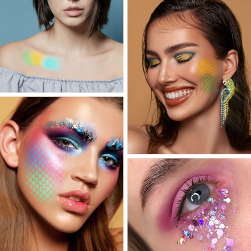 ??Easy to Use??Easy to apply, just place these mermaid stencils on your body or face and start painting, you can use them easily by yourself all over your face and body for a costume. Charming and unique designs for Halloween, music festivals, party makeup, cosplay
