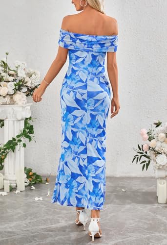 MEROKEETY Women's Summer Off Shoulder Floral Maxi Dress 2025 Formal Wedding Guest Cocktail Bodycon Dresses