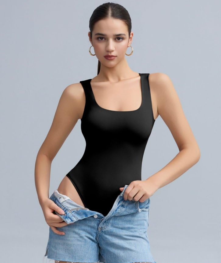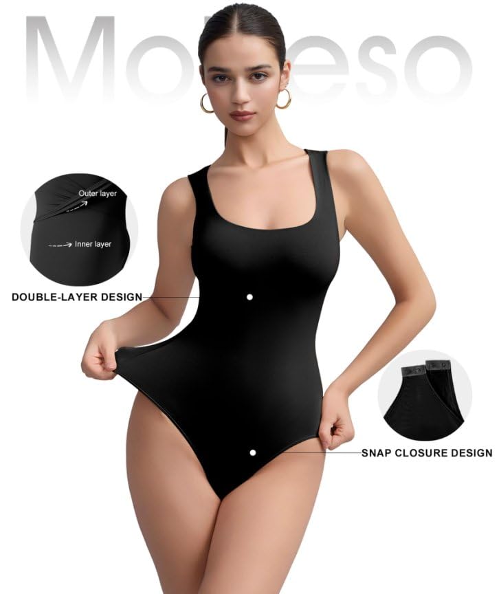 Women's Square Neck Thong Sleeveless Bodysuit Double-Lined Tank Top Slim Fit Stretchy Tank Top, Breathable Fabric