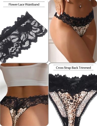 ohyeah Sexy Lace G-String Thongs Panties Low Rise Underwear Undies for Women Cotton Crotch Cheeky Tangas Panties 4-18