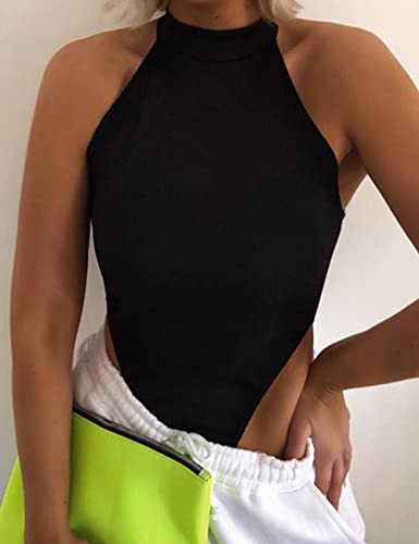 Women's Scoop Neck Bodysuit Sleeveless Ribbed Racerback Tank Tops Stretchy Bodycon One Piece Bodysuit
