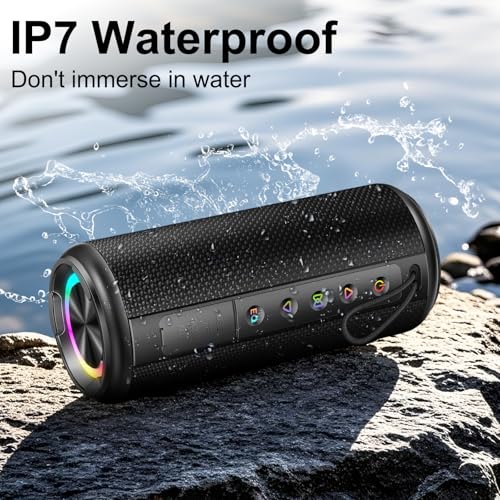 Portable Bluetooth Speaker, Bluetooth 5.4 Wireless Speaker with 20W HD Loud Stereo Sound, 15H Playtime, IP7 Waterproof, LED Lights, TWS Pairing, Built-in Mic, for Outdoor, Home, Party, Beach, Gift