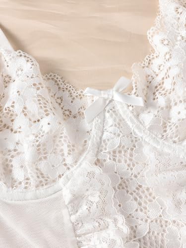 Sexy Ruffle Mini Mesh Floral Lace UnderWire Sheer Belt Lingerie Set Teddy Bodysuit Top 2 Piece