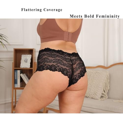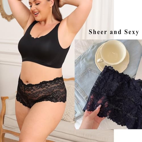 Timothee Womens Plus Size Panties Mid Rise- Lace Boyshorts Panty, Cheeky Underwear Boy Shorts for Women, Pack of 4