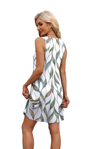 WEESO Womens Summer Dresses Loose U Neck Sleeveless Sundresses Dress with Pockets