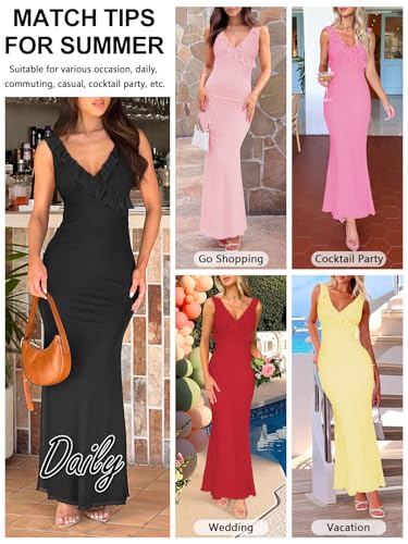 Women Sexy Sleeveless V-Neck Ruffle Backless Summer Dresses Long Formal Dress for Women Cocktail Party Prom Dress