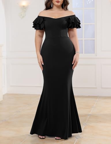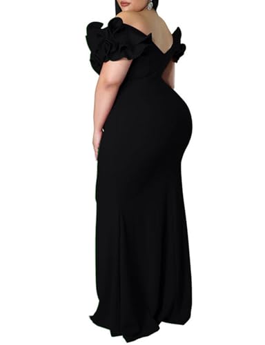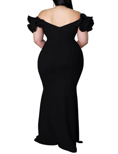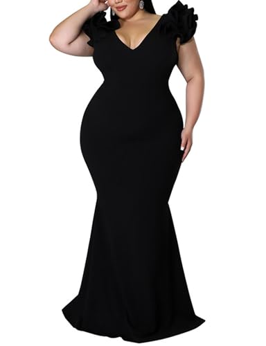 Women's Plus Size Maxi Dress Elegant V-Neck Ruffle Sleeves Bodycon Mermaid Dresses Evening Gown
