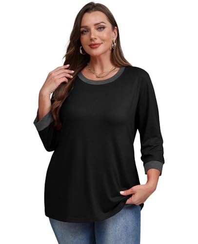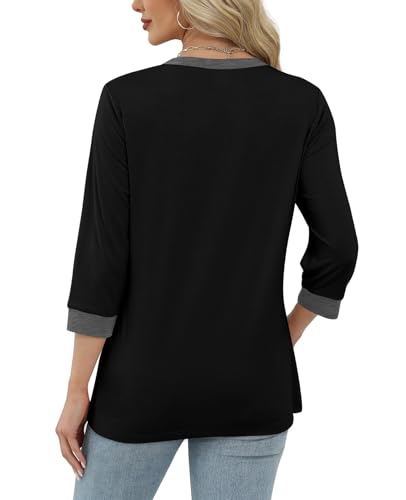 XIEERDUO Womens T Shirts 3/4 Length Sleeve Womens Tops Dressy Casual Crew Neck Color Block Tunic Tops
