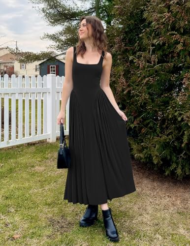 ZESICA Womens 2025 Summer Sleeveless Square Neck Sundress Casual Long Flowy A Line Knit Dress Beach Vacation Maxi Dresses